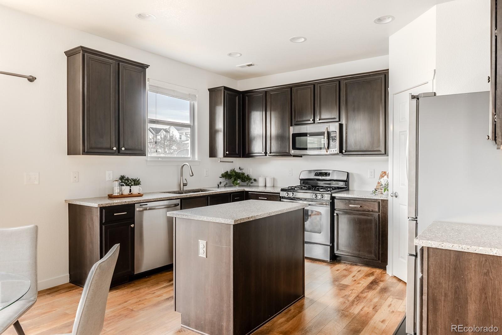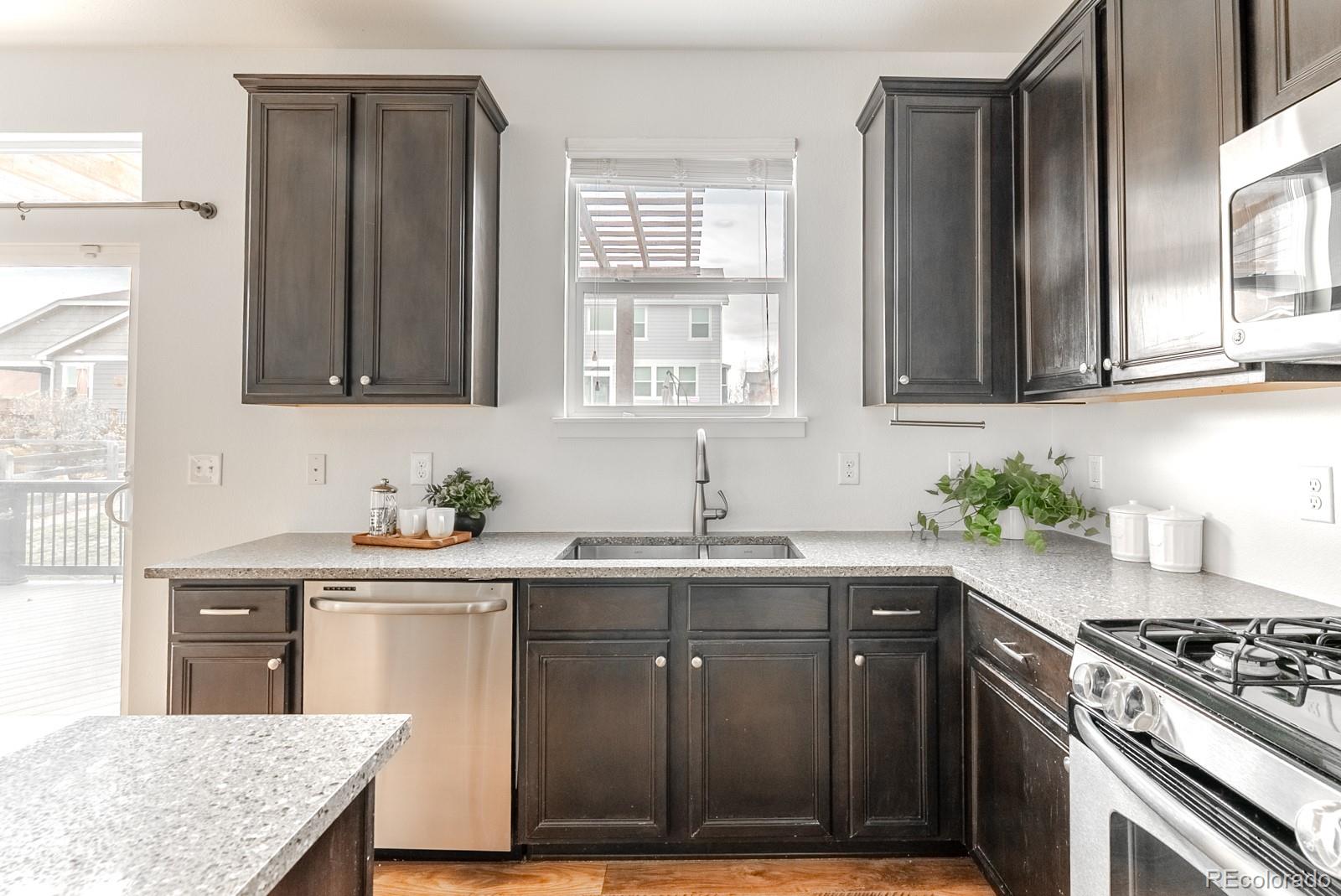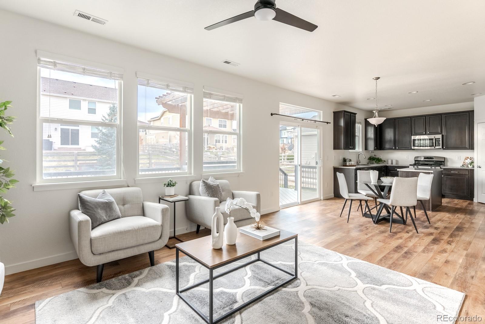 Balancing style with functionality, this freshly updated home captures the essence of Colorado living. Set in the coveted Whisper Creek community--where mountain vistas, meandering trails and neighborhood camaraderie define the lifestyle--it offers an ideal blend of space, design and value in one of Arvada's most sought-after enclaves. With stone accents, timeless hues and a front porch framing spectacular Flatirons views, this home is as captivating from the street as it is livable within. The light-filled main level unfolds in an open plan designed for connection and flow. Wide-plank wood-style floors lend warmth, while fresh paint and generous windows create a bright, modern aesthetic. Where daily life naturally gathers, the kitchen unites beauty and function with expansive granite counters and gleaming stainless appliances that set a sophisticated tone, while abundant cabinetry and a center island anchor the space with purpose and poise. The adjoining dining and living areas allow cooking, conversation and laughter to move easily from one space to the next, while a versatile front room adapts beautifully as a formal dining area, home office or relaxed lounge. Upstairs, the thoughtful floor plan with brand new carpet places all four bedrooms and a spacious loft on one level--a rare and sought-after layout that enhances livability, keeping everyone close while allowing each space to feel personal and private. The primary suite is generous in scale with a luxurious bath featuring dual sinks, a soaking tub and glass-enclosed shower. An upstairs laundry adds convenience right where it's needed most. Outdoors, a full-width deck extends the living space beneath a pergola that filters sunlight across a clever drink bar--perfect for gatherings that linger into golden hour. A lush lawn beyond invites play, pets and summer evenings under the stars. Whisper Creek offers top-rated schools, a pool, clubhouse, courts and walkable access to Starbucks, restaurants and conveniences.