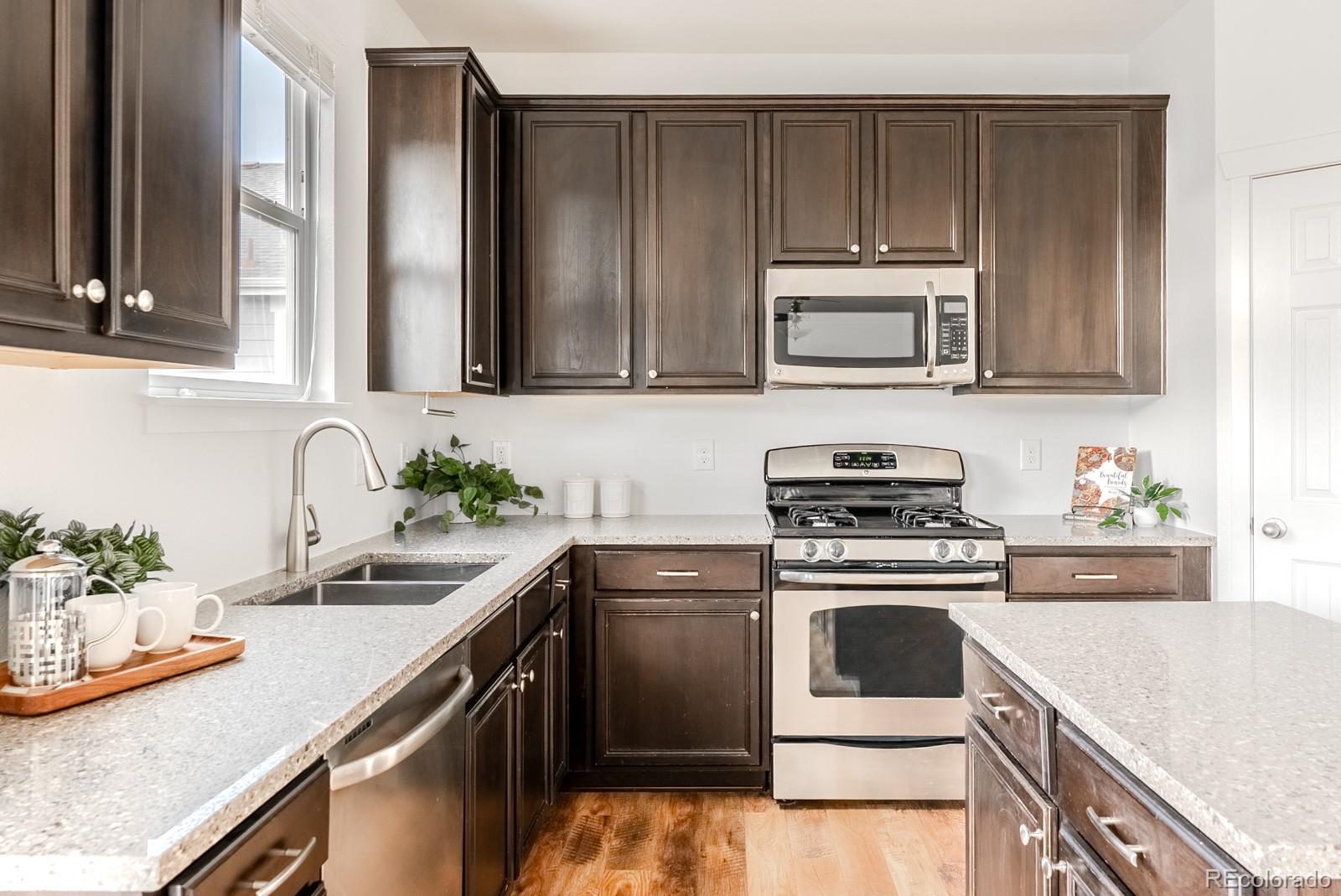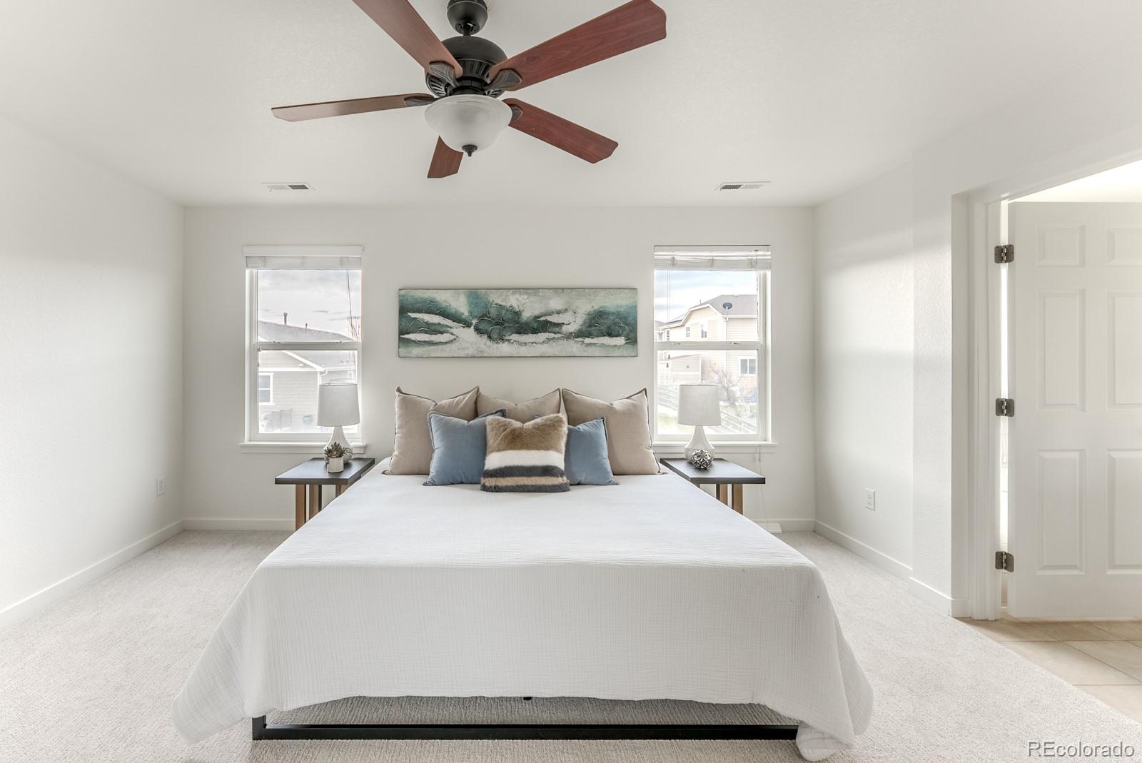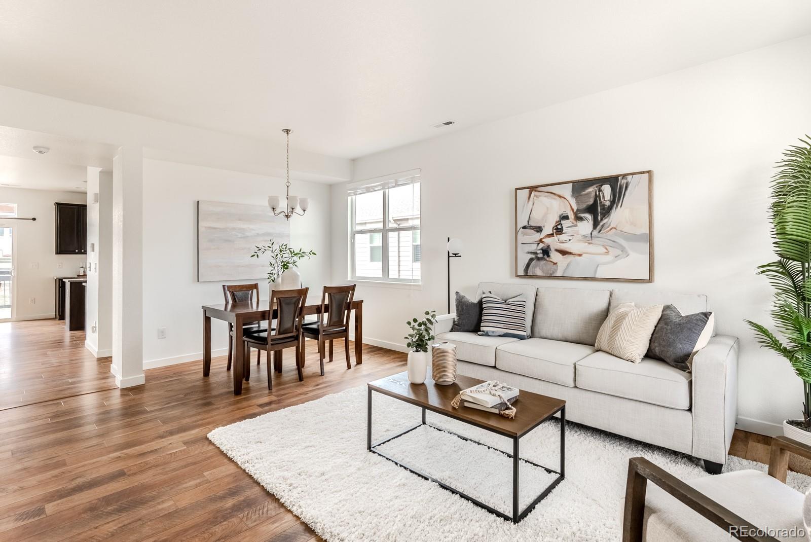 Balancing style with functionality, this freshly updated home captures the essence of Colorado living. Set in the coveted Whisper Creek community--where mountain vistas, meandering trails and neighborhood camaraderie define the lifestyle--it offers an ideal blend of space, design and value in one of Arvada's most sought-after enclaves. With stone accents, timeless hues and a front porch framing spectacular Flatirons views, this home is as captivating from the street as it is livable within. The light-filled main level unfolds in an open plan designed for connection and flow. Wide-plank wood-style floors lend warmth, while fresh paint and generous windows create a bright, modern aesthetic. Where daily life naturally gathers, the kitchen unites beauty and function with expansive granite counters and gleaming stainless appliances that set a sophisticated tone, while abundant cabinetry and a center island anchor the space with purpose and poise. The adjoining dining and living areas allow cooking, conversation and laughter to move easily from one space to the next, while a versatile front room adapts beautifully as a formal dining area, home office or relaxed lounge. Upstairs, the thoughtful floor plan with brand new carpet places all four bedrooms and a spacious loft on one level--a rare and sought-after layout that enhances livability, keeping everyone close while allowing each space to feel personal and private. The primary suite is generous in scale with a luxurious bath featuring dual sinks, a soaking tub and glass-enclosed shower. An upstairs laundry adds convenience right where it's needed most. Outdoors, a full-width deck extends the living space beneath a pergola that filters sunlight across a clever drink bar--perfect for gatherings that linger into golden hour. A lush lawn beyond invites play, pets and summer evenings under the stars. Whisper Creek offers top-rated schools, a pool, clubhouse, courts and walkable access to Starbucks, restaurants and conveniences.