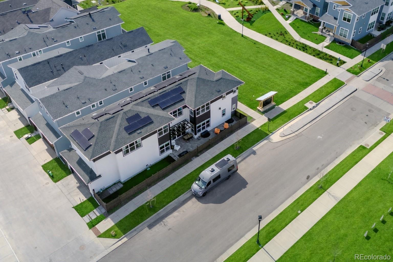 In the heart of Downtown Superior--where community paths weave between parks and front porches feel intentionally social--this better than new residence occupies the most enviable setting in the neighborhood fronting a wide greenbelt and siding to an open space park allowing the sky to feel broader and the horizon uninterrupted. Owned and meticulously curated by a design executive, the residence transcends new construction with every finish refined and every surface elevated--imbuing the home with a distinct personality all its own. Wide-plank hardwood floors extend throughout both levels, where an open plan and walls of glass draw natural light through the living spaces. The chef's kitchen blends beauty and performance with a professional suite of stainless appliances including a built-in refrigerator, gas range with hood and double ovens. Flat-panel cabinetry, a ceiling-height backsplash and a contrasting waterfall island with storage on both sides create a striking focal point for gathering. The living room centers around a dramatic linear fireplace with modern tile extending to the lofted ceiling while an office with custom built-ins and window seat offers an inspiring workspace. The sunlit dining area showcases a modern chandelier and custom coffee bar as outdoor living flows naturally to a fenced yard with low-maintenance turf and an expansive patio overlooking the park. Upstairs, four bedrooms, three baths, a spacious loft and laundry comprise the perfect layout. The primary suite features designer lighting and a spa-inspired bath with a tiled vanity wall, extended dual-head shower and boutique-style closet. An unfinished basement offers room to grow, while the three-car garage with heightened ceilings allows for a car lift. Located just 10 minutes from Boulder and 20 from Denver, Downtown Superior offers walkable access to dining, shops, open space trails, the Sports Stable and Whole Foods--blending vibrant community living with Colorado's outdoor lifestyle.