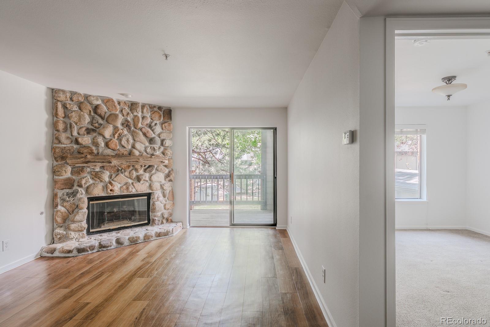 Tucked into a lush, tree-filled enclave in the heart of Boulder, this immaculate condo offers the perfect blend of serene surroundings, modern updates and unbeatable convenience. Set within a community known for its resort-style amenities--including a sparkling outdoor pool, hot tub, sauna, fitness center, club room with library and secure elevator access--this move-in-ready home is a peaceful retreat less than a mile from Pearl Street, a 10 minute bike ride to CU and a short stroll along the Goose Creek trail to Whole Foods. Inside, an open floorplan unfolds across wood-style plank floors, creating a warm, cohesive flow between living, dining, and kitchen spaces. The updated kitchen features classic maple shaker cabinetry, granite countertops, stainless appliances, a breakfast bar and ample room for a dining table--perfect for both casual mornings and dinner with friends. Freshly painted white walls enhance the natural light, especially in the sun-filled living area where a river rock fireplace with a rustic timber mantel adds mountain-inspired charm. Step outside to a private, south-facing covered deck--an inviting extension of the living space, generously sized for both outdoor dining and lounging in the filtered sunlight. The bedroom offers a quiet retreat with a spacious walk-in closet, while the nicely appointed full bath includes stylish tilework and a framed mirror that adds an elevated touch. A convenient in-unit washer and dryer complete the comfort and functionality of the home and spacious storage closet on the deck keeps your living space beautifully uncluttered. Set in a verdant setting that feels worlds away--yet just minutes from everything Boulder has to offer--this condo delivers a rare combination of tranquility, design and access in one beautifully maintained home. Whether you're seeking your first home, a lock-and-leave pied-a-terre or a savvy investment opportunity, Trout Farm delivers comfort, charm, and a coveted address in the heart of Boulder.