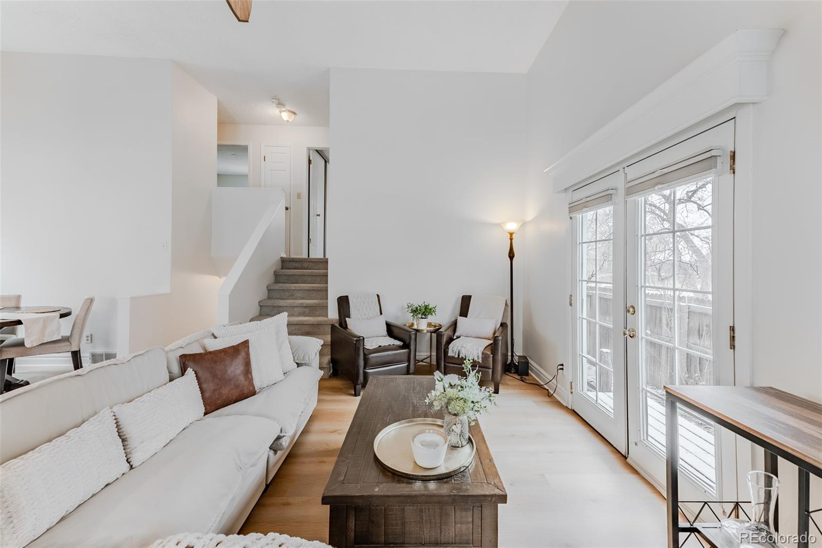 Nestled along a peaceful, tree-lined street in one of Lafayette's most desirable neighborhoods, 320 London Avenue captivates from first glance. Classic brickwork and scalloped trim create a storybook facade rich in charm, while lush landscaping and a gently curved walkway lead to a covered front porch--a gracious pause inviting morning coffee and enjoyable moments watching the neighborhood come to life. Inside, a bright and airy living room welcomes you with vaulted ceilings, warm flooring and abundant natural light streaming through well-placed windows and French doors. The space feels open yet comfortable while remaining thoughtfully defined for both everyday living and entertaining. The kitchen blends style and function with rich wood cabinetry, expansive countertops and stainless appliances while the adjoining dining area opens directly to the deck effortlessly extending daily life outdoors. Upstairs, the primary bedroom is a generous retreat with soft finishes, plush carpeting and ample closet space, complemented by a shared bath featuring direct access and a clean, functional design. A second upper-level bedroom offers flexible accommodations for family, guests or a home office, while the lower level unfolds as a beautiful, light-filled open suite--perfect for secondary living, extended stays, or work-from-home needs--complete with new carpeting, a streamlined bath, and convenient laundry. Out back, a hidden garden escape awaits. A wide deck sits beneath a canopy of cafe lights strung end to end, setting the scene for impromptu dinners and evenings that drift happily into night. Beyond, an expansive lawn and tiered garden beds add charm and seasonal color, framed by mature trees that enhance privacy and peace. Walking distance to Waneka Lake and just moments from Old Town Lafayette and Downtown Louisville, this perfect location offers an effortlessly inspired Colorado lifestyle filled with trails, dining and community connection.