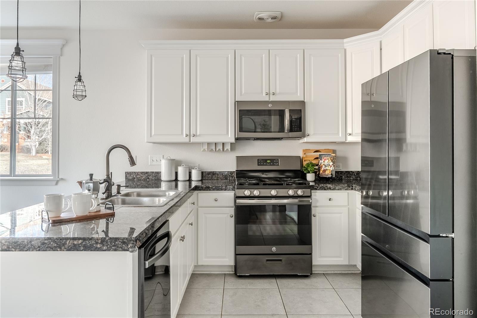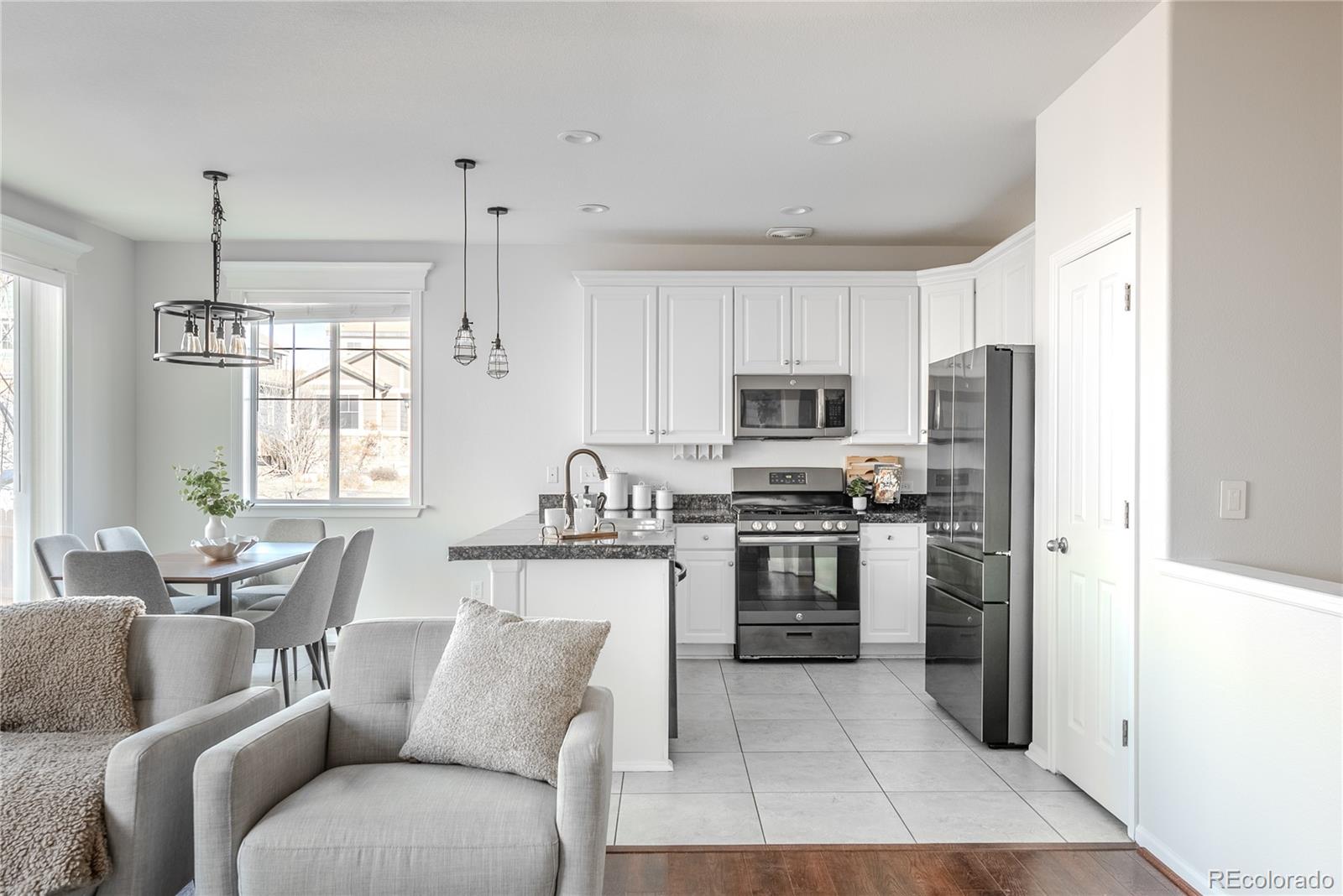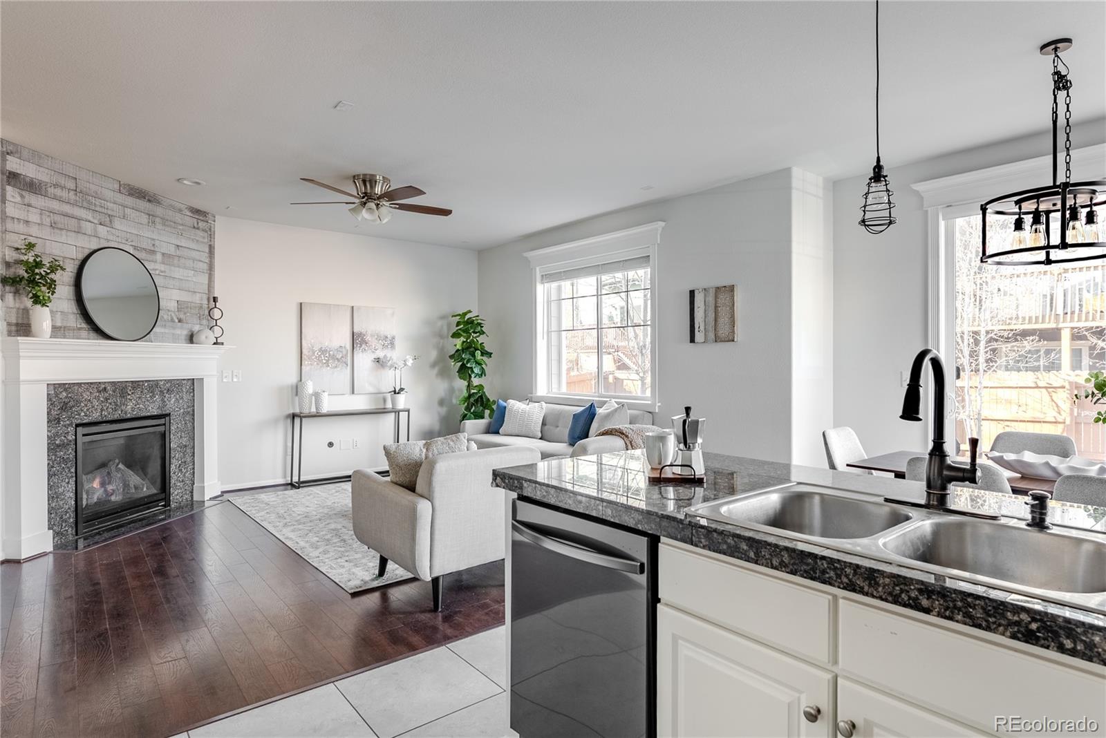 Beautifully refreshed, character filled and effortlessly livable, this Boulder County ranch blends style, warmth and everyday comfort in a way that instantly feels like home. Fresh interior paint, new carpet and curated upgrades elevate the home, creating a bright, inviting atmosphere from the moment you step inside. The kitchen sets the tone with white cabinetry, rich granite, stainless appliances and a generous peninsula that becomes the natural hub for morning coffee, homework sessions and lingering conversations. Sunlight fills the adjoining dining area framing peaceful views of the backyard and flowing seamlessly into the family room. Here, a focal gas fireplace, paneled accent wall and expansive windows create a gracious yet refined backdrop for movie nights, celebrations or quiet evenings by the fire. The primary suite is a true retreat, enhanced by a dramatic custom feature wall, luxurious ensuite with dual sinks and soaking tub and a spacious walk-in closet. Two additional main-level bedrooms offer flexibility for guests, family or an inspiring home office. The fully finished lower level expands the home's livability with two more large bedrooms, a well-designed bath, and an expansive recreation area perfect for relaxing and entertaining. Its showpiece--a custom speakeasy-style bar--features reclaimed wood, brick accents, industrial lighting and a rolling library ladder, creating a moody, intimate setting where gatherings stretch late into the evening. Outside, the private fenced backyard invites summer grilling, stargazing or relaxed weekends at home. Ideally positioned in the heart of Erie, this home offers small-town charm with top-rated schools, parks, trails and friendly neighbors, plus walkability to the planned Erie Town Center and easy access to Historic Downtown Erie's boutiques and acclaimed restaurants. Fully paid solar panels add meaningful monthly savings--rounding out a home that delivers comfort, character, and true Colorado lifestyle appeal.