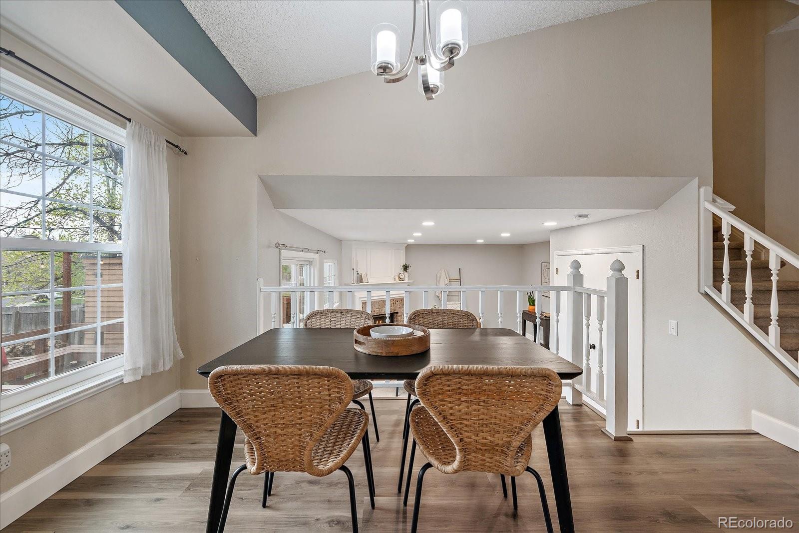 Inside, you'll find an inviting open floor plan with soaring ceilings that set the stage for everyday living and entertaining. The cozy wood-burning fireplace adds warmth and charm to the living room, while the updated kitchen flows effortlessly into the dining area. Upstairs features three bedrooms, including a serene primary suite, along with a second full bathroom.