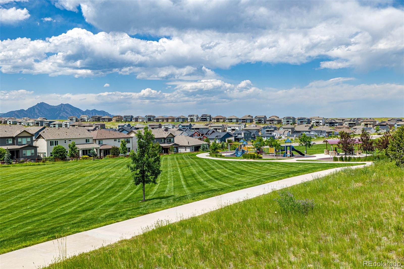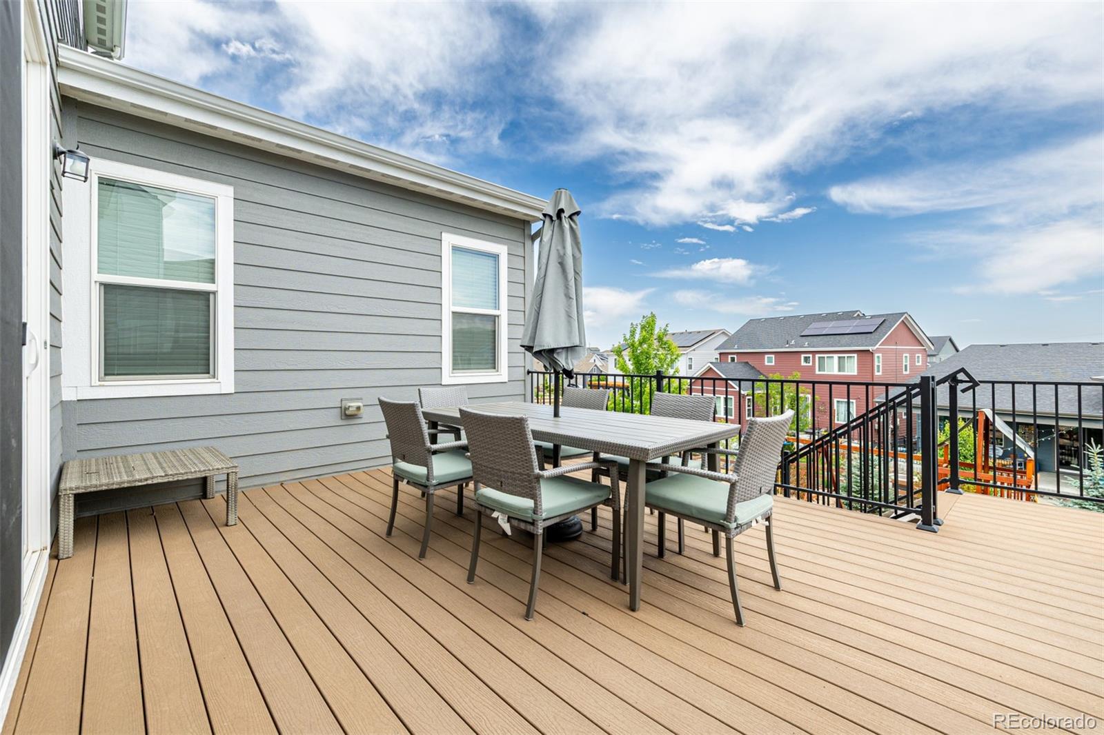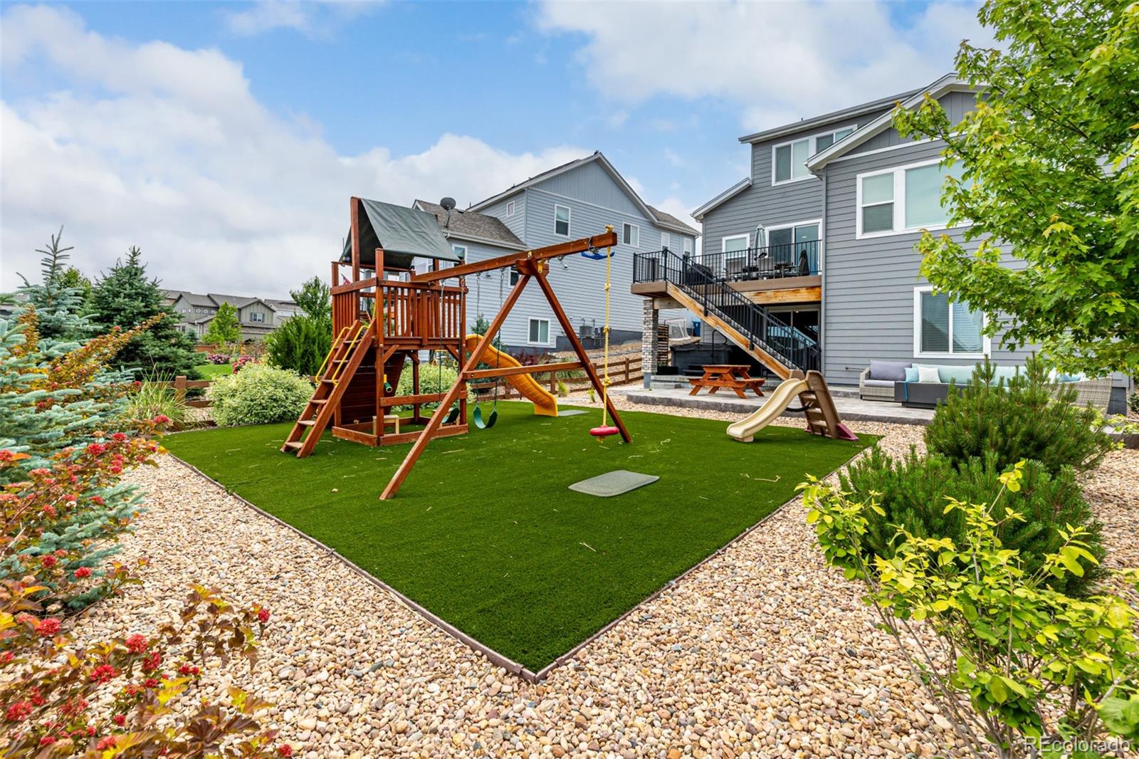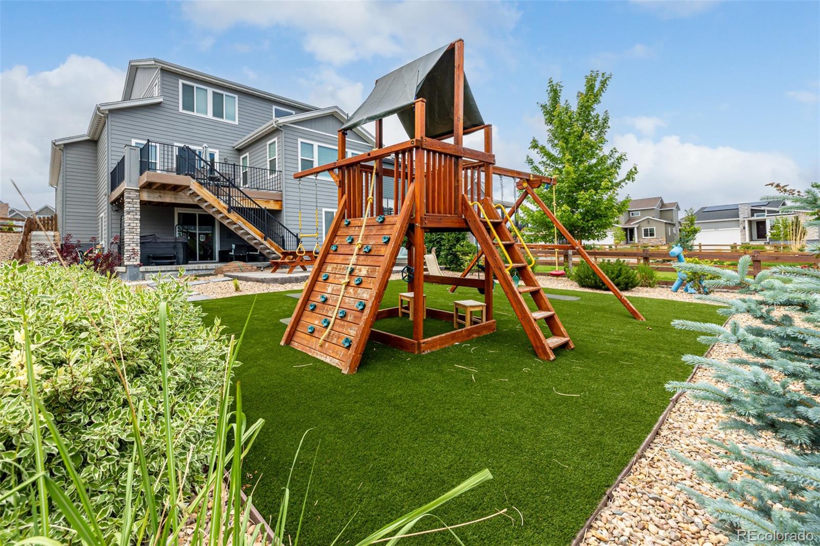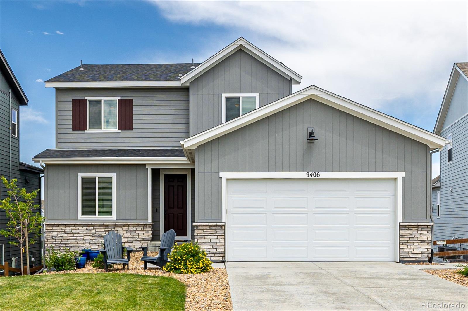Perfect in every way! Tucked at the end of a quiet cul-de-sac in the sought-after Candelas Community, this beautiful two-story home masterfully blends sophistication, functionality, and Colorado charm. A lush front lawn sets the tone, framing the 3-car garage and welcoming curb appeal with undeniable warmth. The fabulous interior showcases vaulted ceilings, abundant natural light, a neutral palette, recessed lighting, and tasteful flooring - carpet & wood-look tile in all the right places. The spacious open layout will surely impress you! The gourmet kitchen is a true centerpiece, showcasing high-end SS appliances, black honed granite counters, a subway tile backsplash, white shaker cabinetry, and a prep island with a breakfast bar. Just off the front entry is a French-door den offers flexible use as a home office or creative space! Additionally, there is a mud room with a closet. All bedrooms await upstairs! The primary suite has a lavish bathroom with dual granite sinks, a soaking tub, a glass-enclosed shower, and a walk-in closet. Two secondary bedrooms share a Jack & Jill bathroom. A major highlight of the home is the walk-out basement, a rare and valuable find! Thoughtfully divided into two large rooms, this versatile space offers endless possibilities: think family room, game room, fitness studio, or multi-generational setup. Out back, unwind or entertain across multiple zones! From the elevated deck to the shaded covered patio below and the open patio beyond, complemented by low-maintenance artificial turf that keeps the landscape vibrant year-round. Living in Candelas means enjoying over 13 miles of trails, 93 acres of open space, and direct access to over 11,500 acres of protected public lands! A nearby National Wildlife Refuge provides a sanctuary for deer, elk, owls, and white pelicans. Minutes from a vibrant mix of shopping, dining, & entertainment. What's not to like? See it! Love it! Live it!