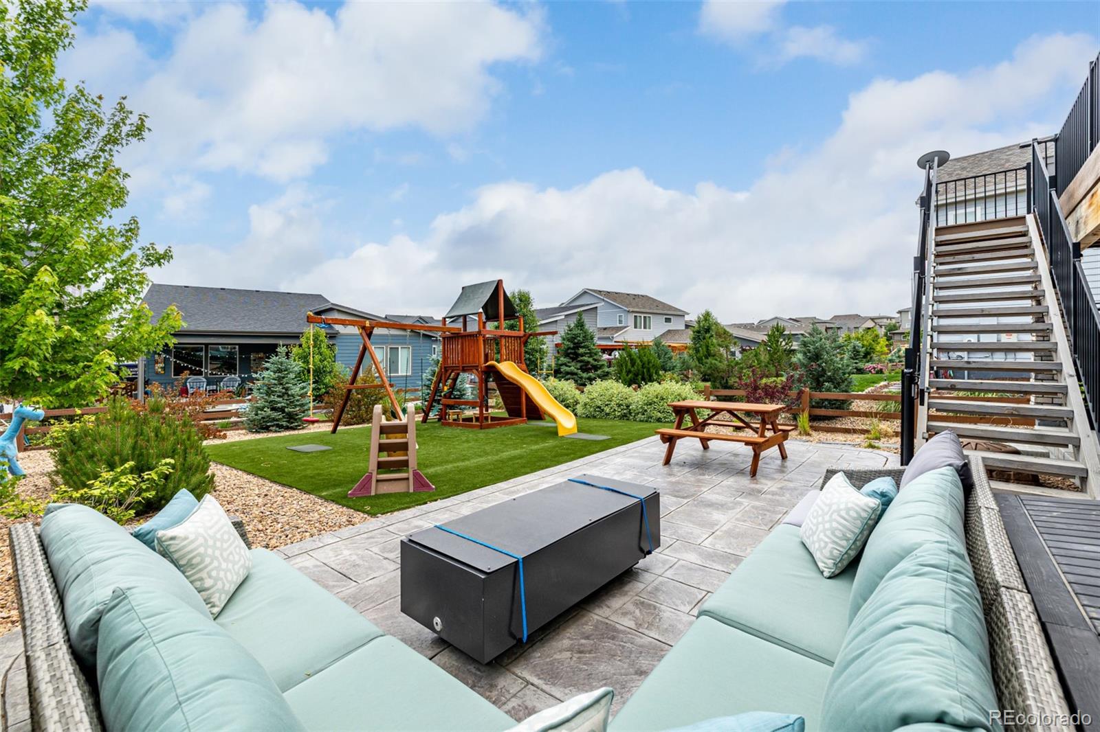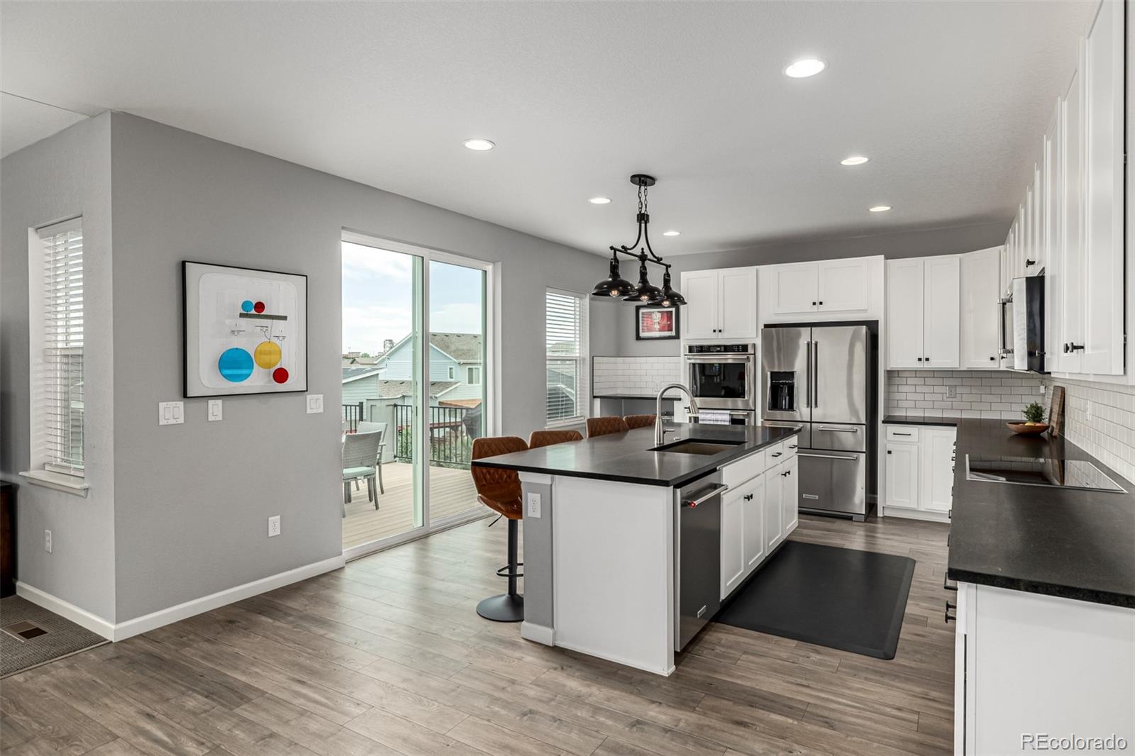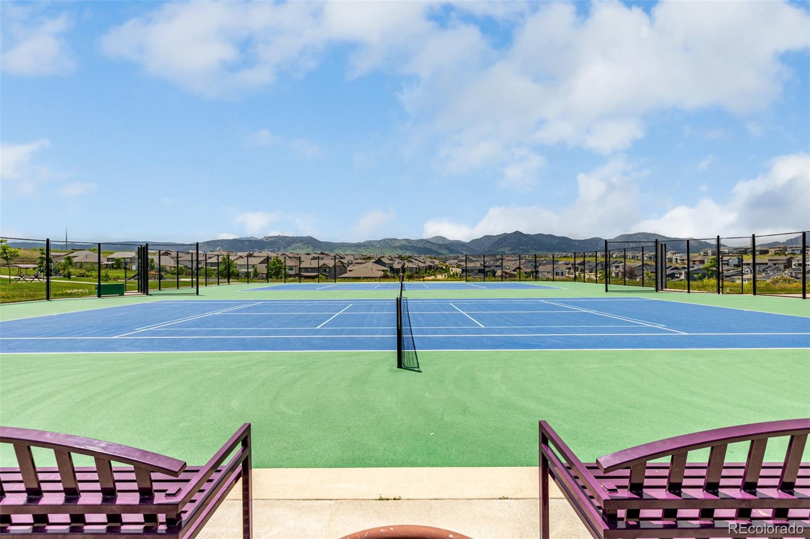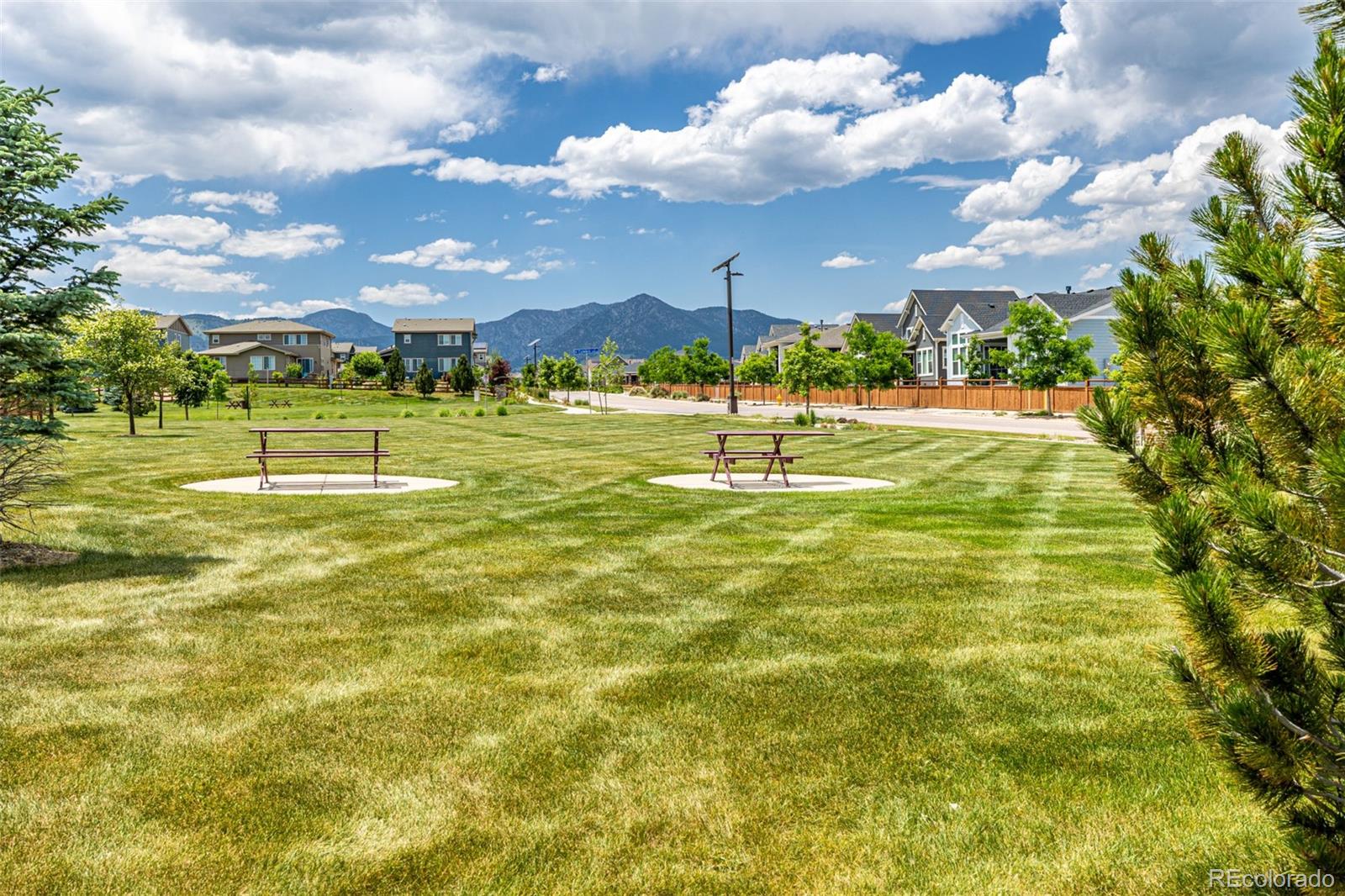 Perfect in every way! Tucked at the end of a quiet cul-de-sac in the sought-after Candelas Community, this beautiful two-story home masterfully blends sophistication, functionality, and Colorado charm. A lush front lawn sets the tone, framing the 3-car garage and welcoming curb appeal with undeniable warmth. The fabulous interior showcases vaulted ceilings, abundant natural light, a neutral palette, recessed lighting, and tasteful flooring - carpet & wood-look tile in all the right places. The spacious open layout will surely impress you! The gourmet kitchen is a true centerpiece, showcasing high-end SS appliances, black honed granite counters, a subway tile backsplash, white shaker cabinetry, and a prep island with a breakfast bar. Just off the front entry is a French-door den offers flexible use as a home office or creative space! Additionally, there is a mud room with a closet. All bedrooms await upstairs! The primary suite has a lavish bathroom with dual granite sinks, a soaking tub, a glass-enclosed shower, and a walk-in closet. Two secondary bedrooms share a Jack & Jill bathroom. A major highlight of the home is the walk-out basement, a rare and valuable find! Thoughtfully divided into two large rooms, this versatile space offers endless possibilities: think family room, game room, fitness studio, or multi-generational setup. Out back, unwind or entertain across multiple zones! From the elevated deck to the shaded covered patio below and the open patio beyond, complemented by low-maintenance artificial turf that keeps the landscape vibrant year-round. Living in Candelas means enjoying over 13 miles of trails, 93 acres of open space, and direct access to over 11,500 acres of protected public lands! A nearby National Wildlife Refuge provides a sanctuary for deer, elk, owls, and white pelicans. Minutes from a vibrant mix of shopping, dining, & entertainment. What's not to like? See it! Love it! Live it!