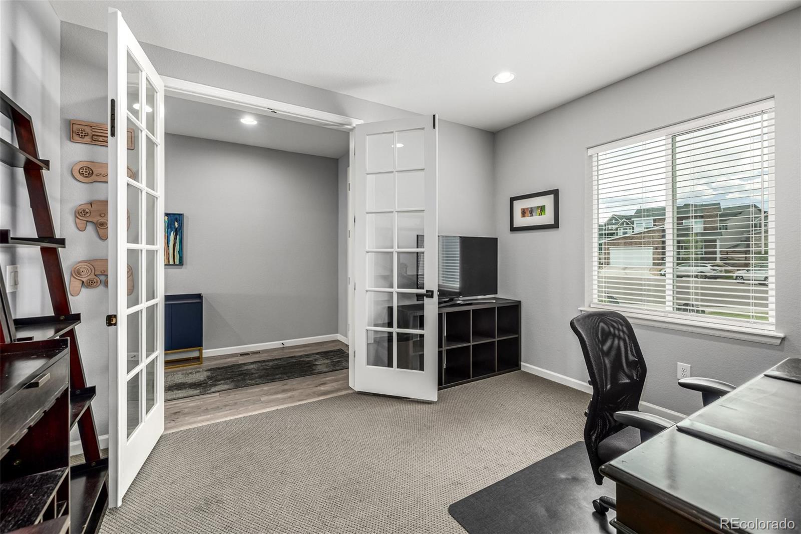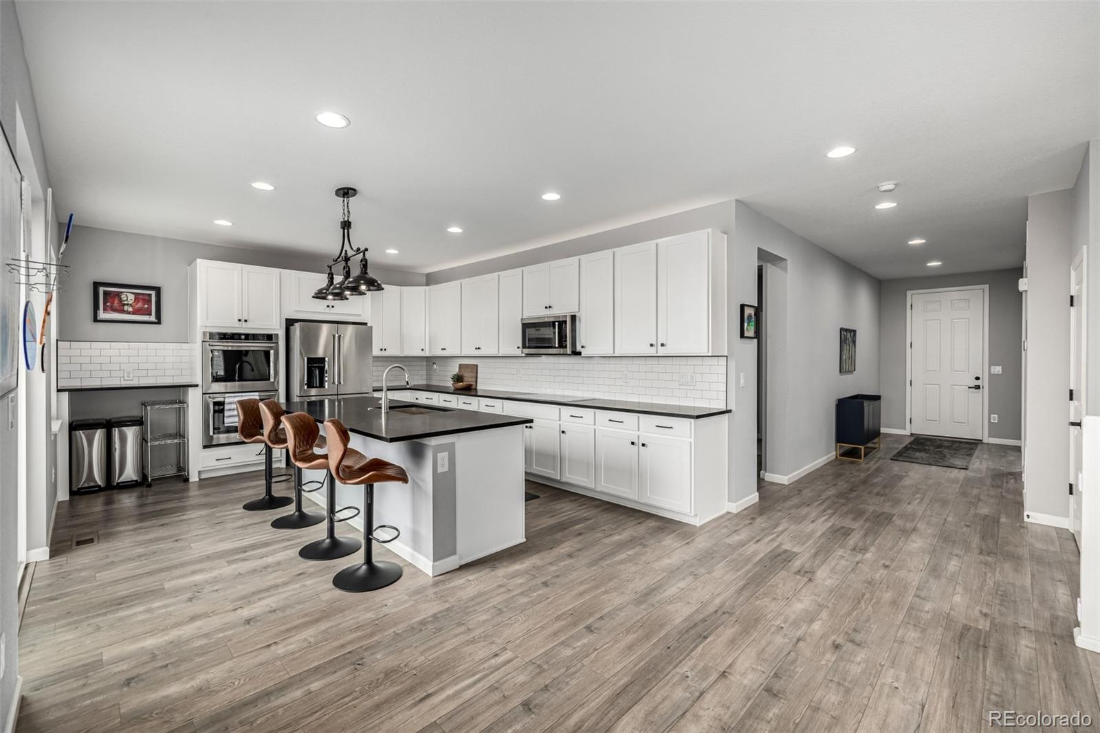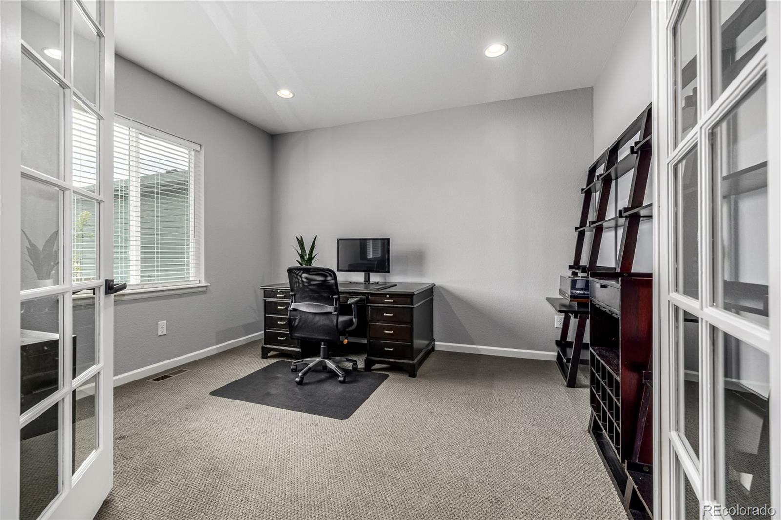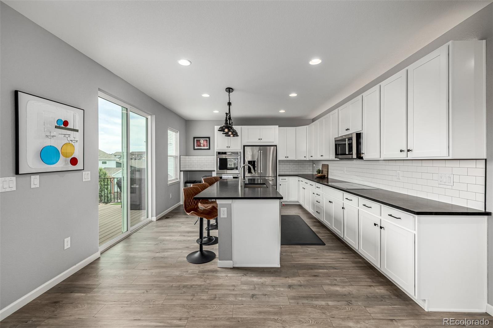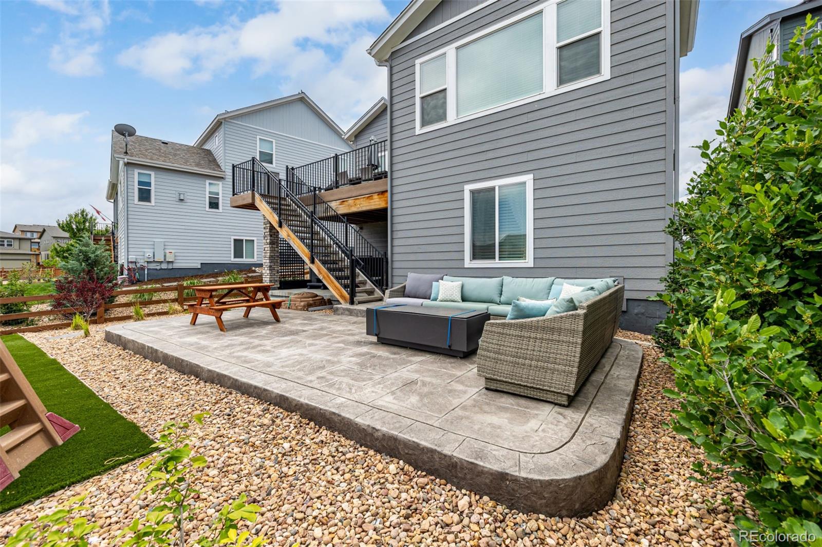 Perfect in every way! Tucked at the end of a quiet cul-de-sac in the sought-after Candelas Community, this beautiful two-story home masterfully blends sophistication, functionality, and Colorado charm. A lush front lawn sets the tone, framing the 3-car garage and welcoming curb appeal with undeniable warmth. The fabulous interior showcases vaulted ceilings, abundant natural light, a neutral palette, recessed lighting, and tasteful flooring - carpet & wood-look tile in all the right places. The spacious open layout will surely impress you! The gourmet kitchen is a true centerpiece, showcasing high-end SS appliances, black honed granite counters, a subway tile backsplash, white shaker cabinetry, and a prep island with a breakfast bar. Just off the front entry is a French-door den offers flexible use as a home office or creative space! Additionally, there is a mud room with a closet. All bedrooms await upstairs! The primary suite has a lavish bathroom with dual granite sinks, a soaking tub, a glass-enclosed shower, and a walk-in closet. Two secondary bedrooms share a Jack & Jill bathroom. A major highlight of the home is the walk-out basement, a rare and valuable find! Thoughtfully divided into two large rooms, this versatile space offers endless possibilities: think family room, game room, fitness studio, or multi-generational setup. Out back, unwind or entertain across multiple zones! From the elevated deck to the shaded covered patio below and the open patio beyond, complemented by low-maintenance artificial turf that keeps the landscape vibrant year-round. Living in Candelas means enjoying over 13 miles of trails, 93 acres of open space, and direct access to over 11,500 acres of protected public lands! A nearby National Wildlife Refuge provides a sanctuary for deer, elk, owls, and white pelicans. Minutes from a vibrant mix of shopping, dining, & entertainment. What's not to like? See it! Love it! Live it!