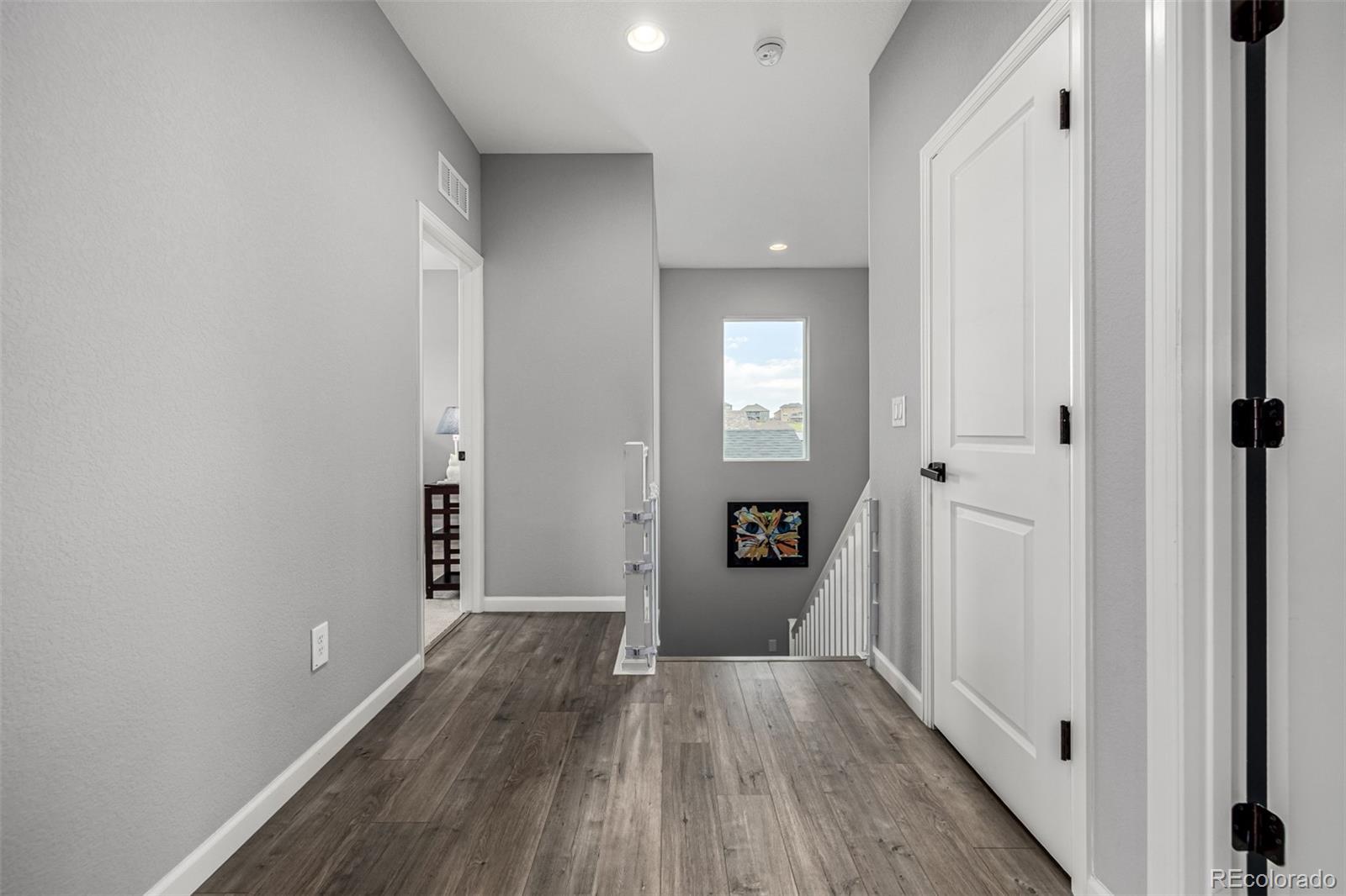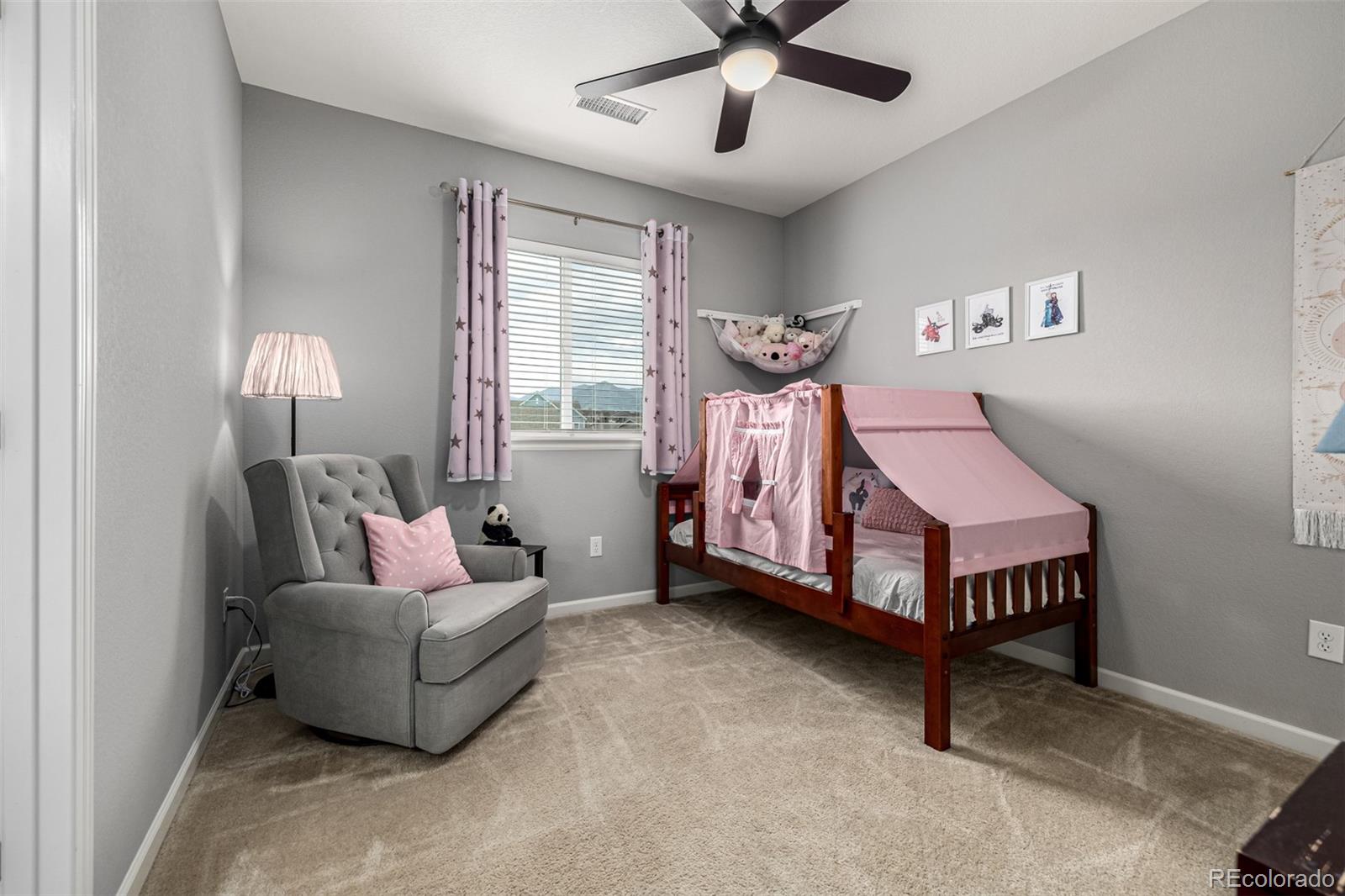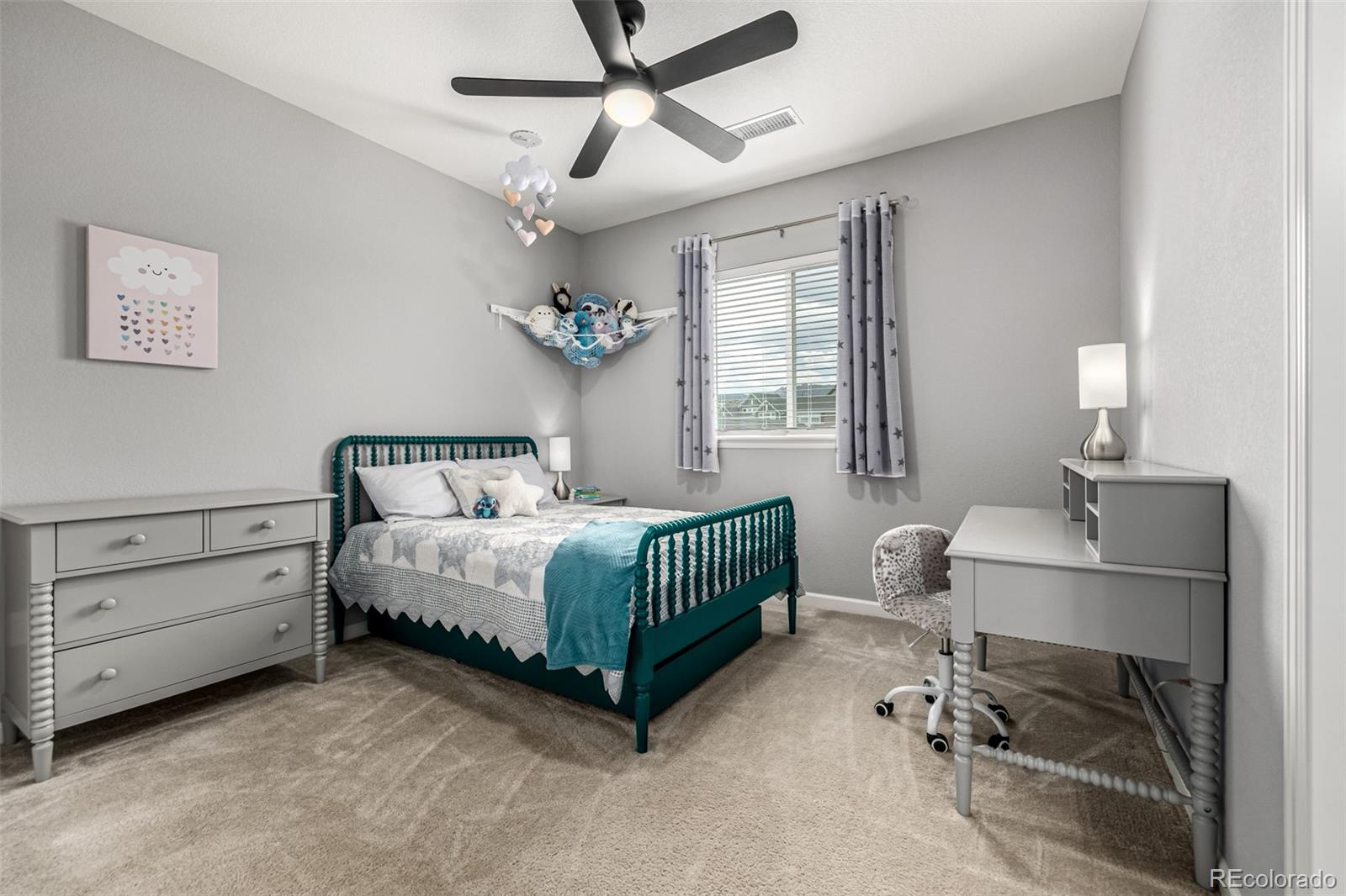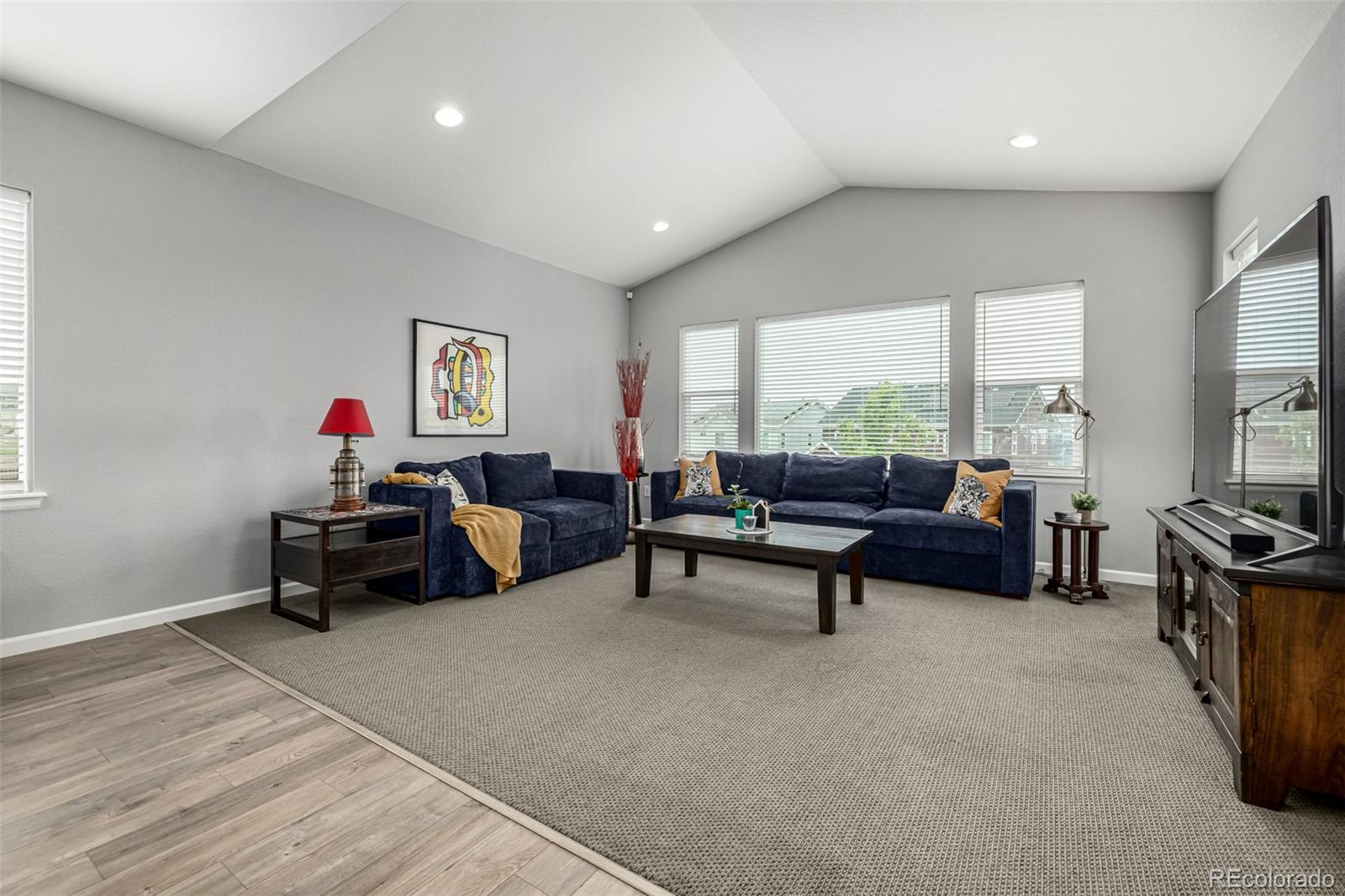 Perfect in every way! Tucked at the end of a quiet cul-de-sac in the sought-after Candelas Community, this beautiful two-story home masterfully blends sophistication, functionality, and Colorado charm. A lush front lawn sets the tone, framing the 3-car garage and welcoming curb appeal with undeniable warmth. The fabulous interior showcases vaulted ceilings, abundant natural light, a neutral palette, recessed lighting, and tasteful flooring - carpet & wood-look tile in all the right places. The spacious open layout will surely impress you! The gourmet kitchen is a true centerpiece, showcasing high-end SS appliances, black honed granite counters, a subway tile backsplash, white shaker cabinetry, and a prep island with a breakfast bar. Just off the front entry is a French-door den offers flexible use as a home office or creative space! Additionally, there is a mud room with a closet. All bedrooms await upstairs! The primary suite has a lavish bathroom with dual granite sinks, a soaking tub, a glass-enclosed shower, and a walk-in closet. Two secondary bedrooms share a Jack & Jill bathroom. A major highlight of the home is the walk-out basement, a rare and valuable find! Thoughtfully divided into two large rooms, this versatile space offers endless possibilities: think family room, game room, fitness studio, or multi-generational setup. Out back, unwind or entertain across multiple zones! From the elevated deck to the shaded covered patio below and the open patio beyond, complemented by low-maintenance artificial turf that keeps the landscape vibrant year-round. Living in Candelas means enjoying over 13 miles of trails, 93 acres of open space, and direct access to over 11,500 acres of protected public lands! A nearby National Wildlife Refuge provides a sanctuary for deer, elk, owls, and white pelicans. Minutes from a vibrant mix of shopping, dining, & entertainment. What's not to like? See it! Love it! Live it!