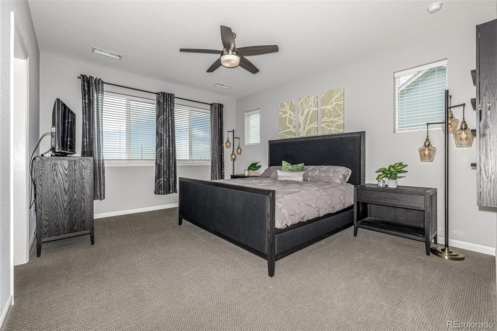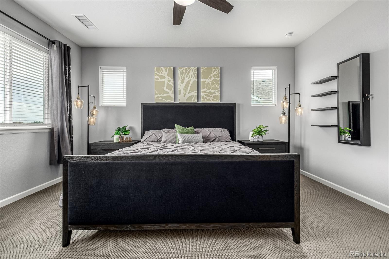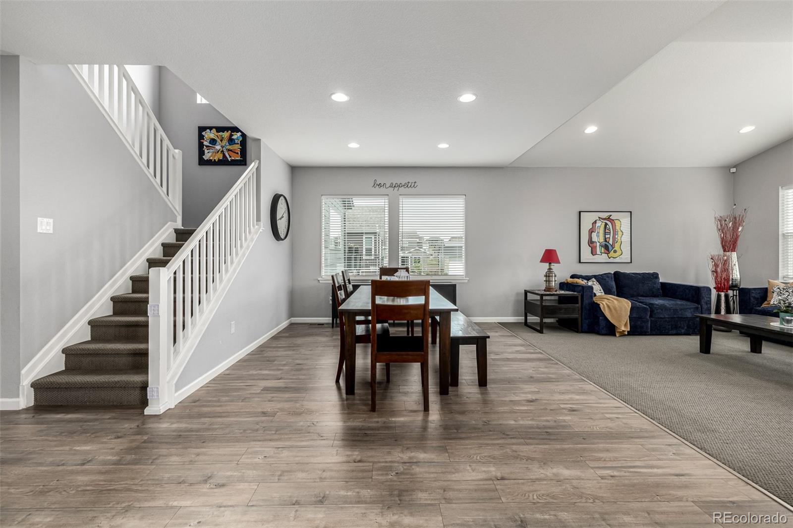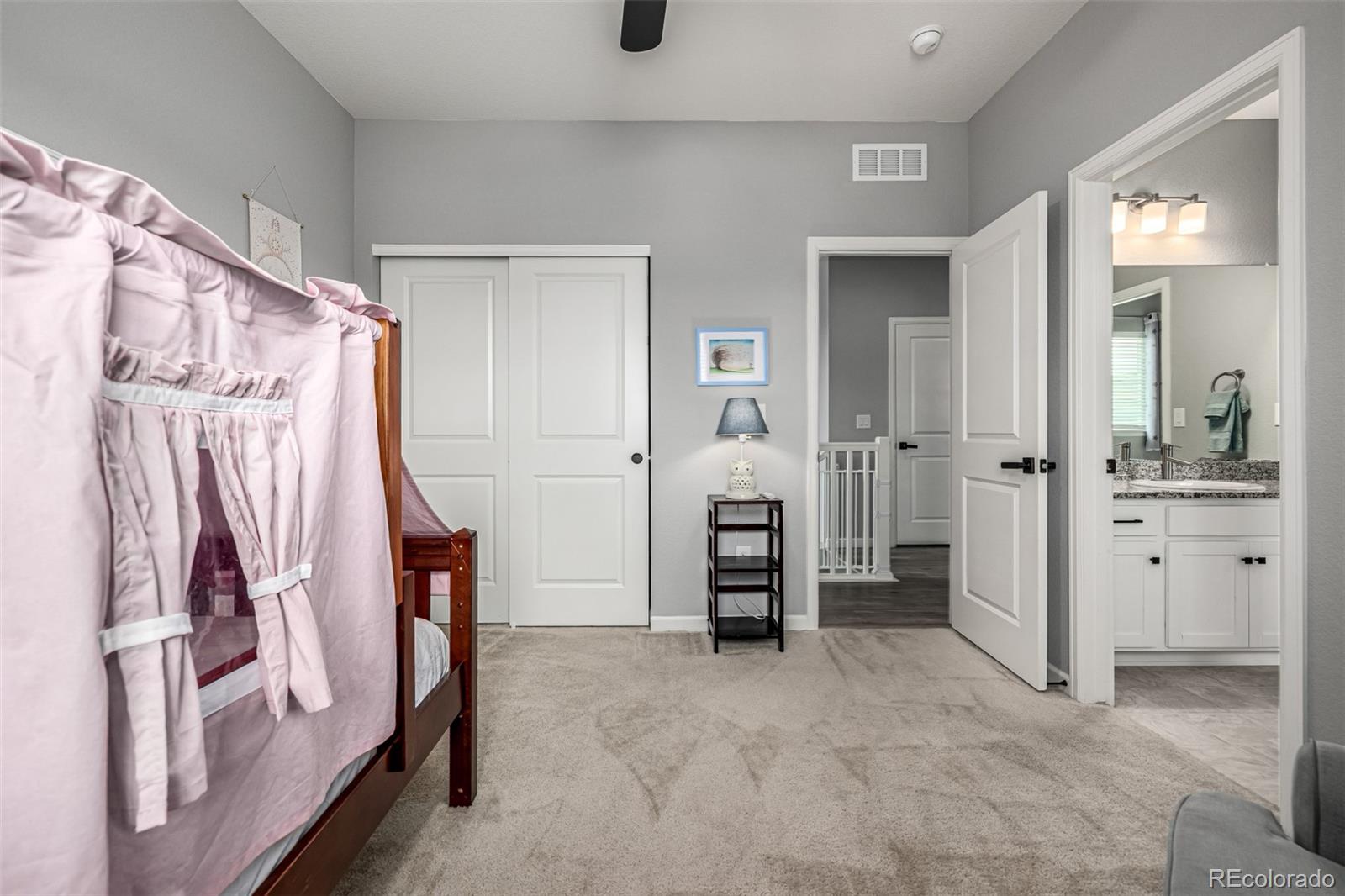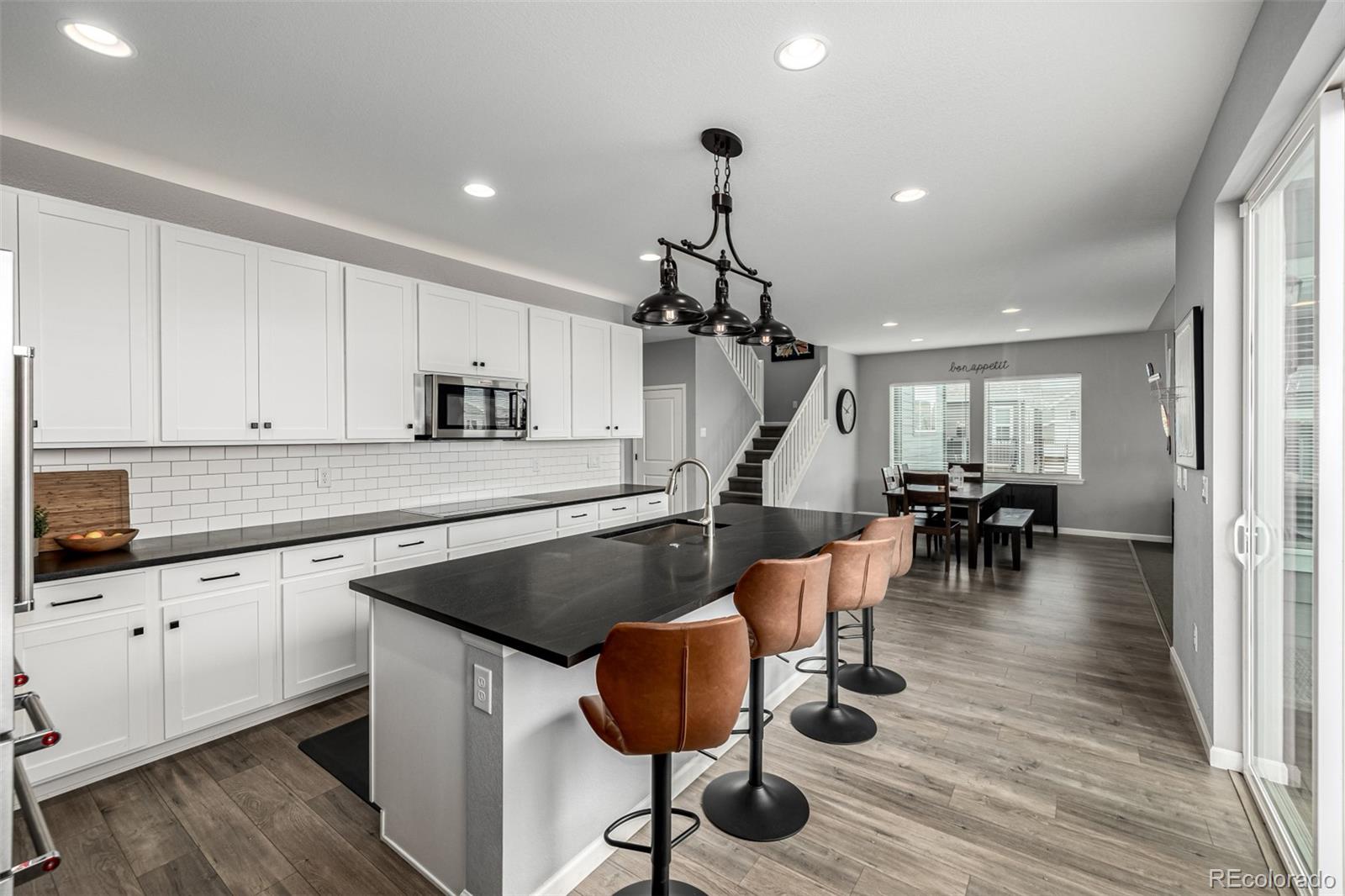 Perfect in every way! Tucked at the end of a quiet cul-de-sac in the sought-after Candelas Community, this beautiful two-story home masterfully blends sophistication, functionality, and Colorado charm. A lush front lawn sets the tone, framing the 3-car garage and welcoming curb appeal with undeniable warmth. The fabulous interior showcases vaulted ceilings, abundant natural light, a neutral palette, recessed lighting, and tasteful flooring - carpet & wood-look tile in all the right places. The spacious open layout will surely impress you! The gourmet kitchen is a true centerpiece, showcasing high-end SS appliances, black honed granite counters, a subway tile backsplash, white shaker cabinetry, and a prep island with a breakfast bar. Just off the front entry is a French-door den offers flexible use as a home office or creative space! Additionally, there is a mud room with a closet. All bedrooms await upstairs! The primary suite has a lavish bathroom with dual granite sinks, a soaking tub, a glass-enclosed shower, and a walk-in closet. Two secondary bedrooms share a Jack & Jill bathroom. A major highlight of the home is the walk-out basement, a rare and valuable find! Thoughtfully divided into two large rooms, this versatile space offers endless possibilities: think family room, game room, fitness studio, or multi-generational setup. Out back, unwind or entertain across multiple zones! From the elevated deck to the shaded covered patio below and the open patio beyond, complemented by low-maintenance artificial turf that keeps the landscape vibrant year-round. Living in Candelas means enjoying over 13 miles of trails, 93 acres of open space, and direct access to over 11,500 acres of protected public lands! A nearby National Wildlife Refuge provides a sanctuary for deer, elk, owls, and white pelicans. Minutes from a vibrant mix of shopping, dining, & entertainment. What's not to like? See it! Love it! Live it!